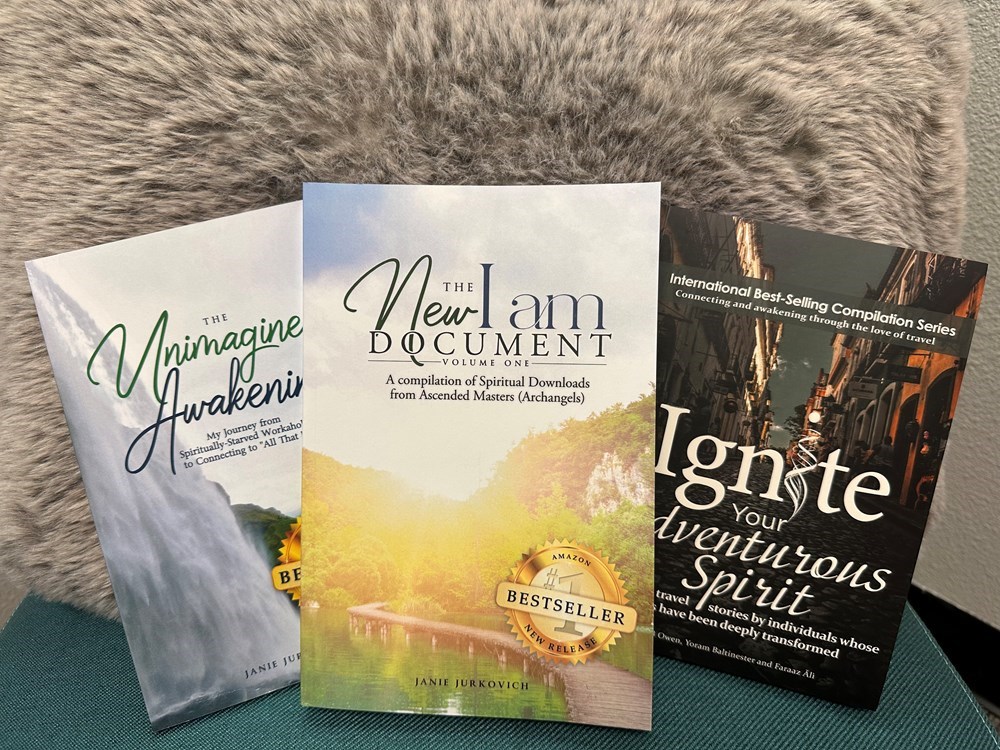 Local best-selling author, Janie J's three spiritual books. Discover how she started her journey and where it is destined to go.
