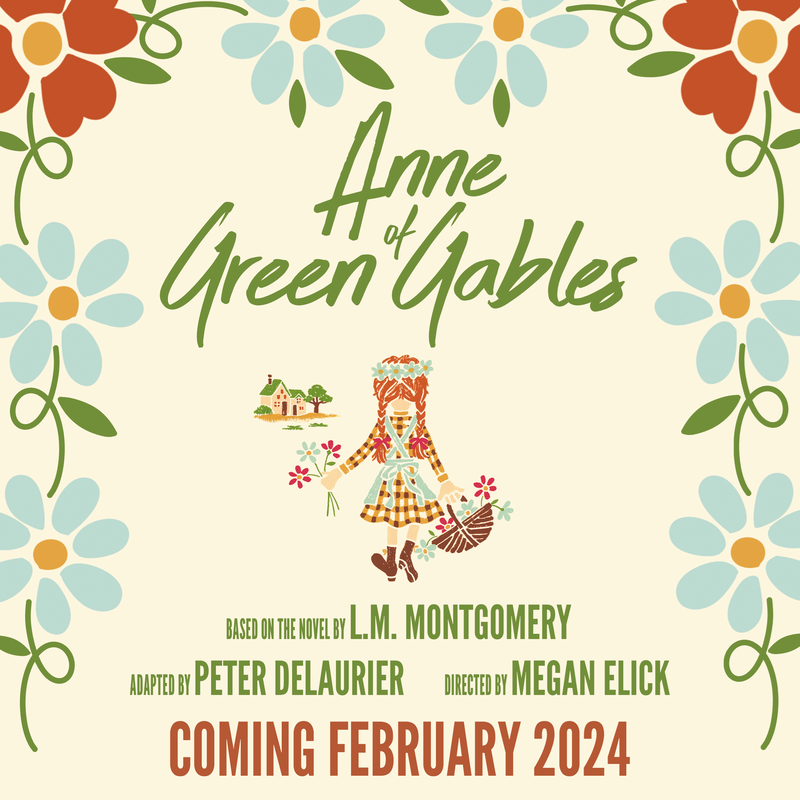 ANNE OF GREEN GABLES FEBRUARY 2024 DIRECTED BY: MEGAN ELICK Staring Ella Noblitt as "Anne" When aging brother and sister Matthew and Marilla Cuthbert send to the orphanage in Nova Scotia for a boy to help them on the farm, they get more than they bargained for. Due to a mix-up, they are instead left with 11-year-old Anne Shirley. Over six years, this romantic, hot-headed, and energetic girl wins their hearts and turns the stodgy, rural Canadian community into a bright world of "kindred spirits." This swift yet theatrical adaptation of the classic novel is an all-ages crowd-pleaser.