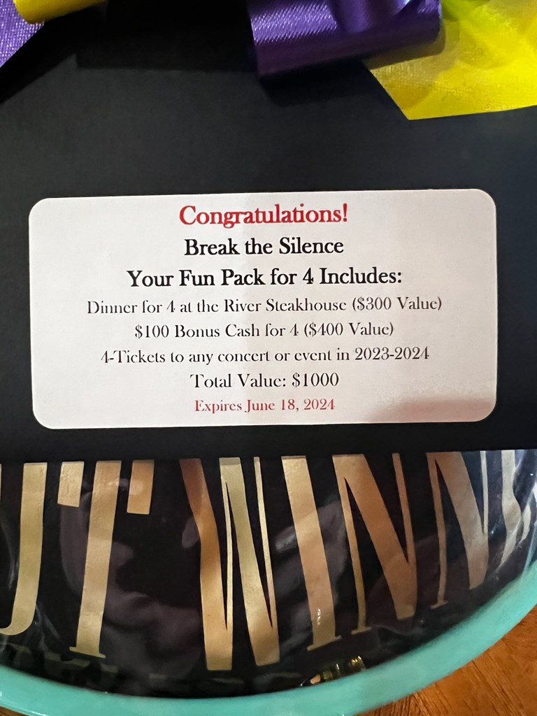 Jackpot Winner Fun Pack for 4 at Eagle Mountain Casino Includes: Dinner for 4 at their amazing River Steakhouse ($300 Value) $100 Bonus Cash for 4 ($400 Value) AND 4 Tickets to any concern or event (expires June 18th, 2024) TOTAL VALUE $1000